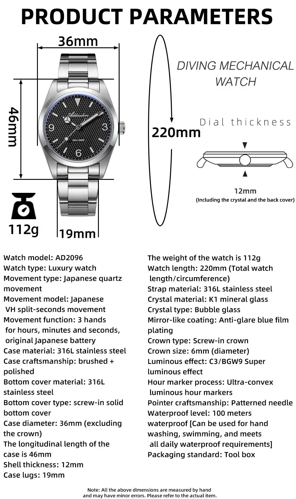 Case diameter: 36mm (excluding crown)